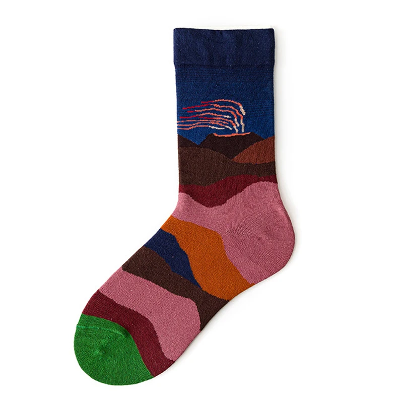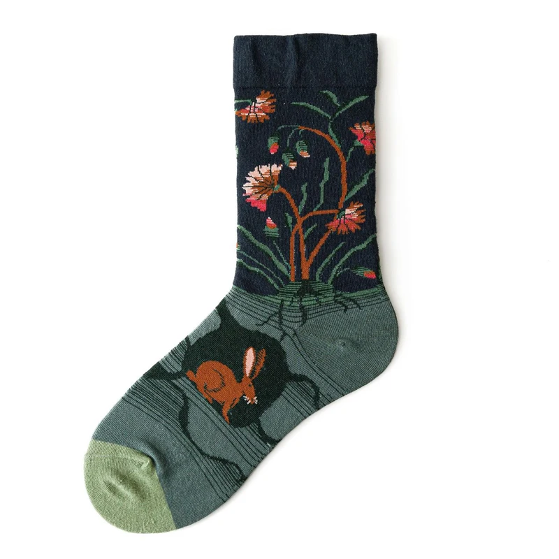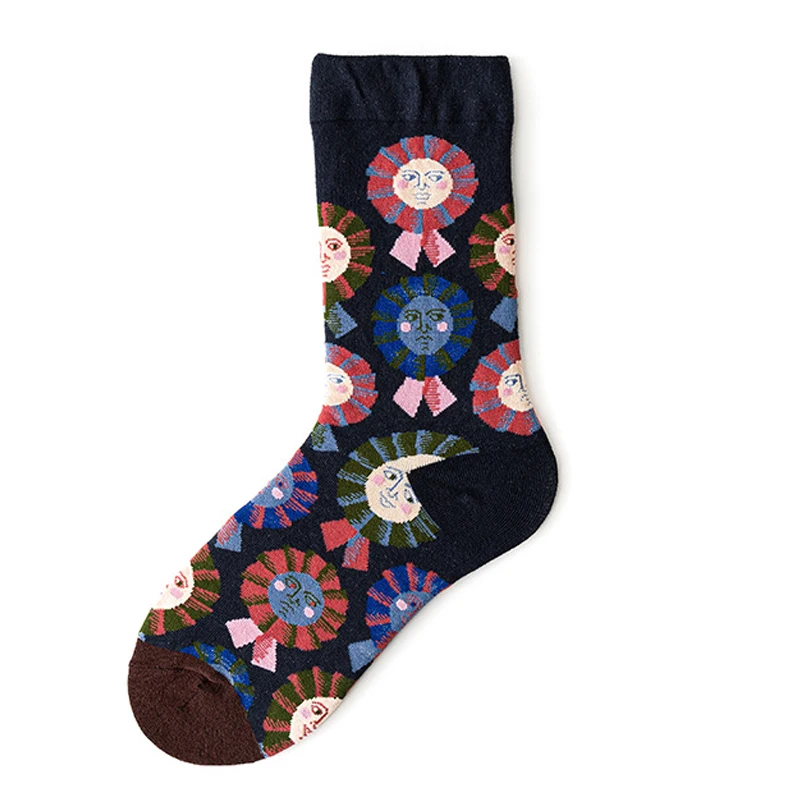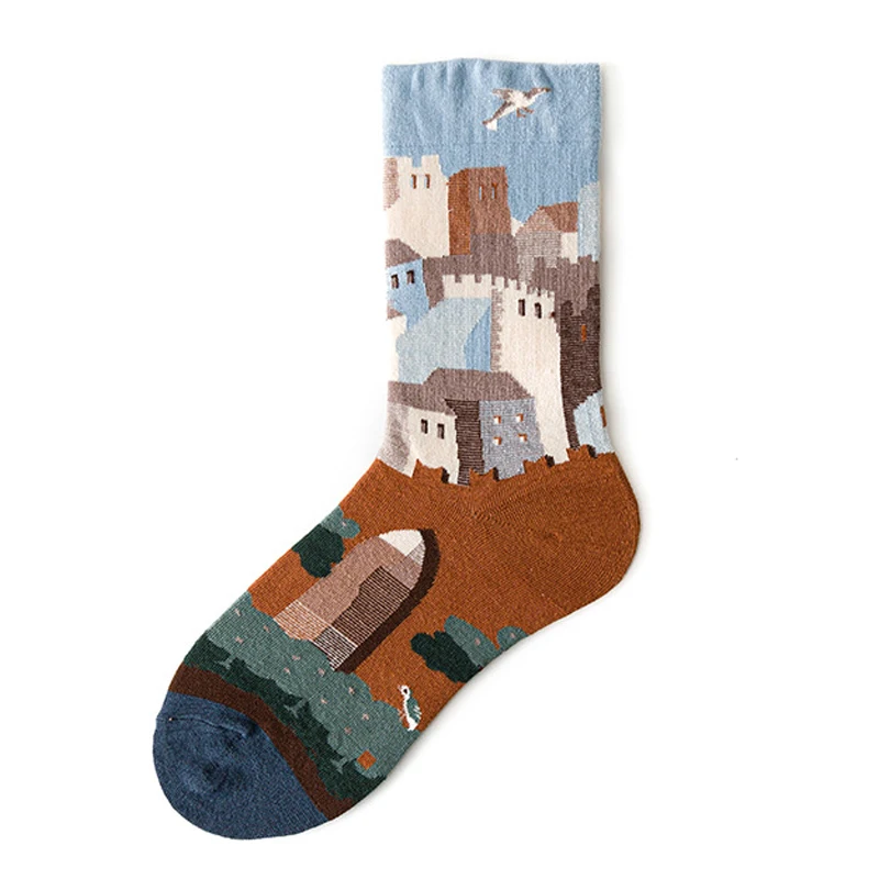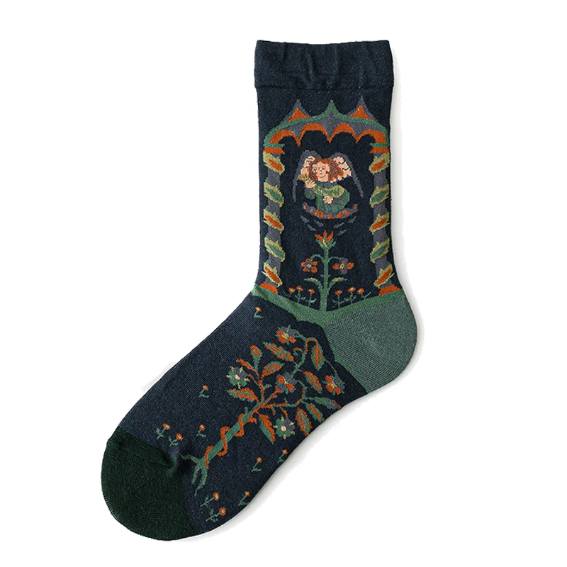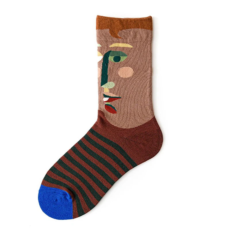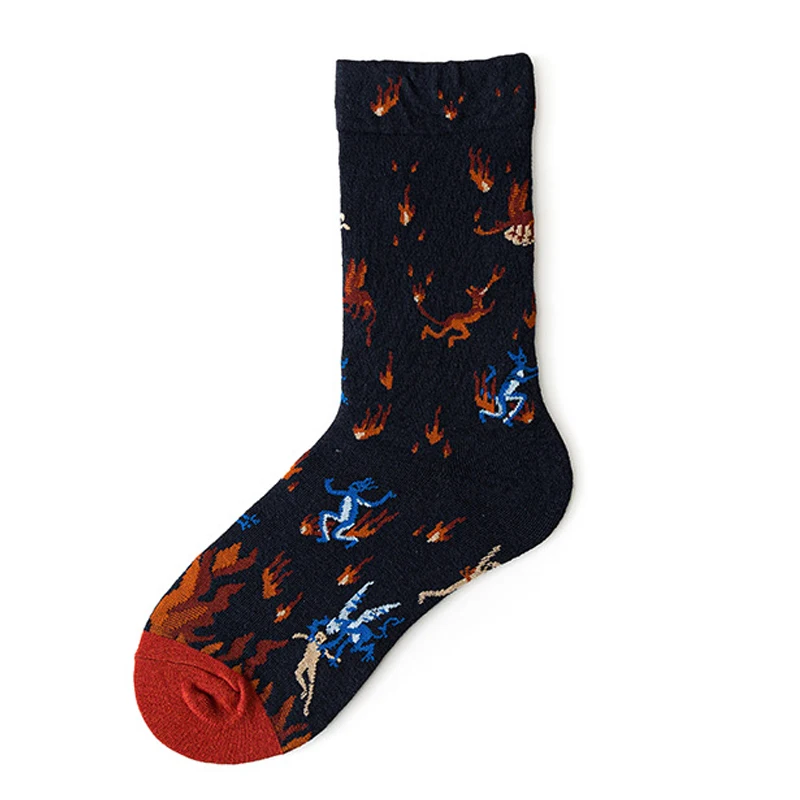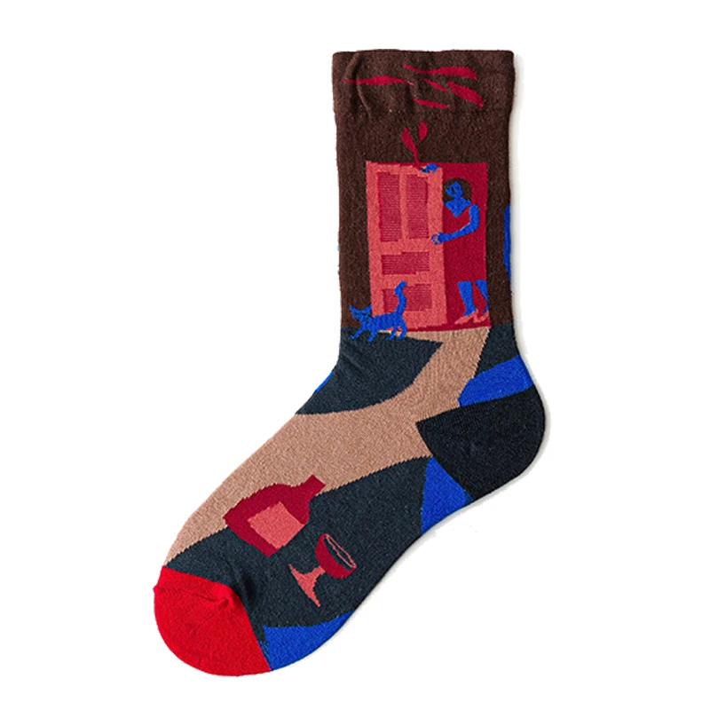 جوارب طويلة للسيدات على الطراز البريطاني للربيع بطباعة عتيقة على الموضة الإبداعية للرجال جوارب بتصميم فرنسي زيتي للرسم جوارب شتوية دافئة من القطن