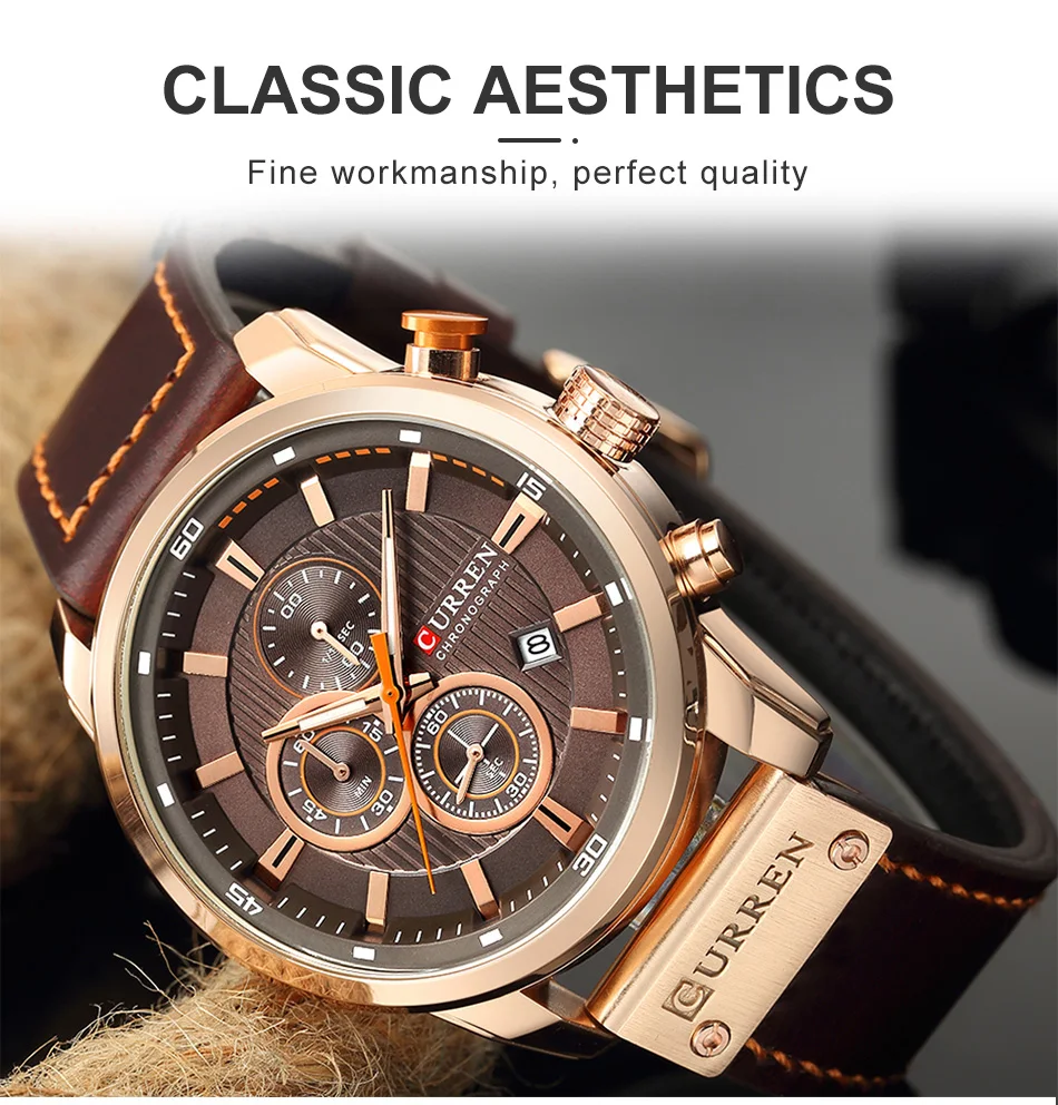 كورين ساعة يد كوارتز للرجال, ساعات رياضية، علامة تجارية من الجلد، كرونوغراف للجيش والعسكرية، الذكور
