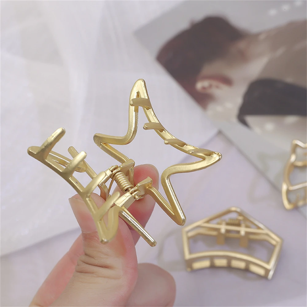 مشابك شعر معدنية مجوفة على شكل قلب مجوف ، مشابك شعر ذهبية صغيرة غير قابلة للانزلاق ، مشابك شعر فكي للنساء والفتيات يوميًا