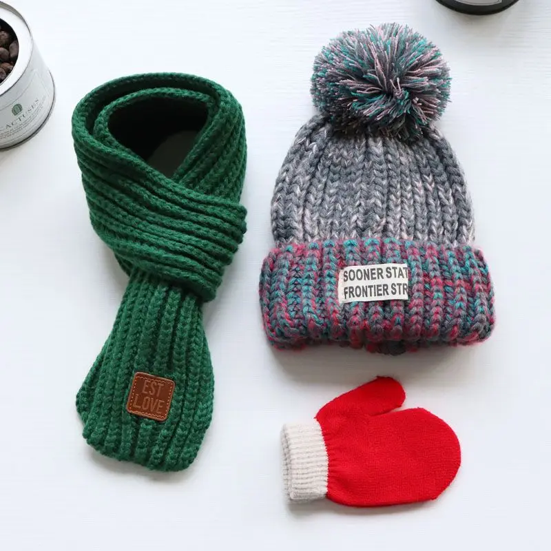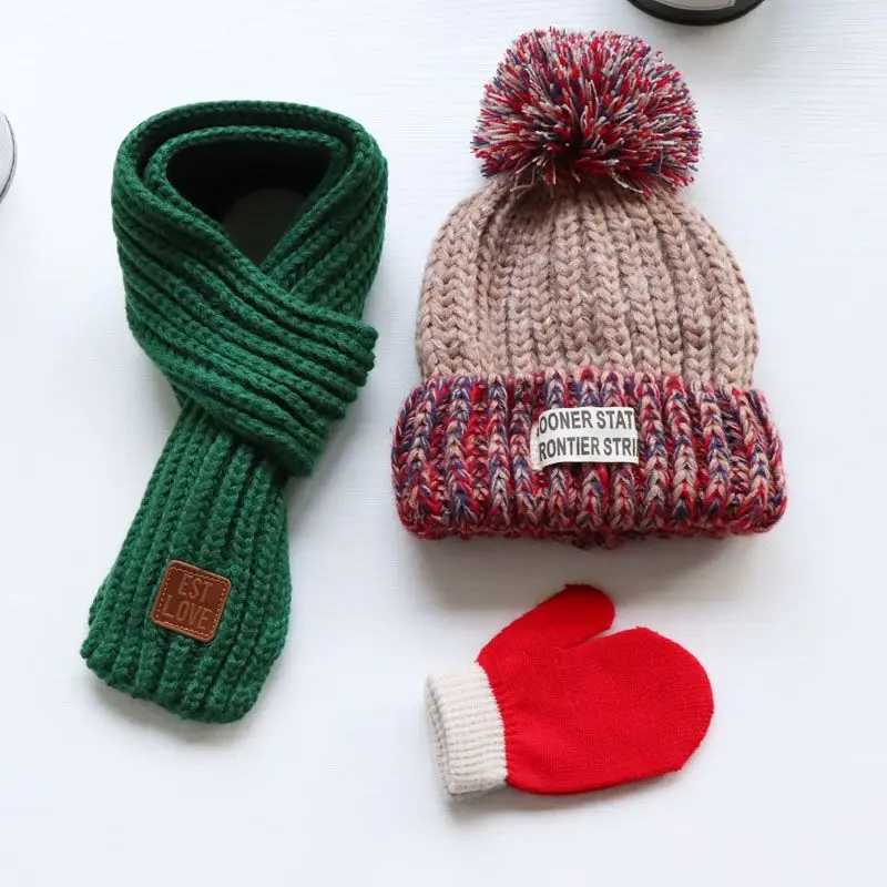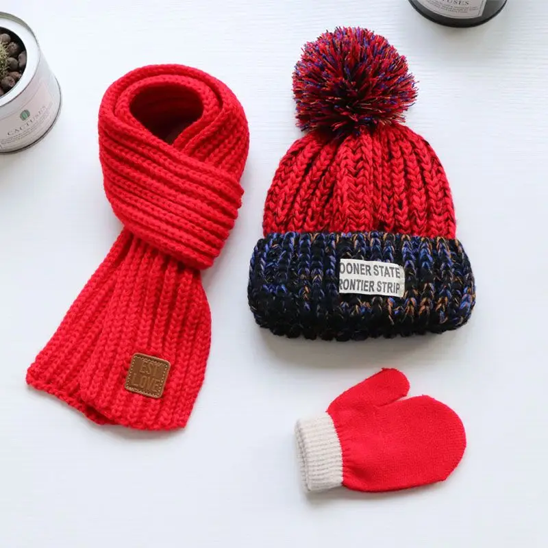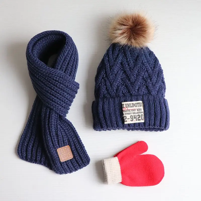 ثلاث قطع الخريف والشتاء الأطفال أفخم قبعة من الصوف الفتيان والفتيات وشاح قفازات الطفل سميكة الدافئة البلوز محبوك قبعة
