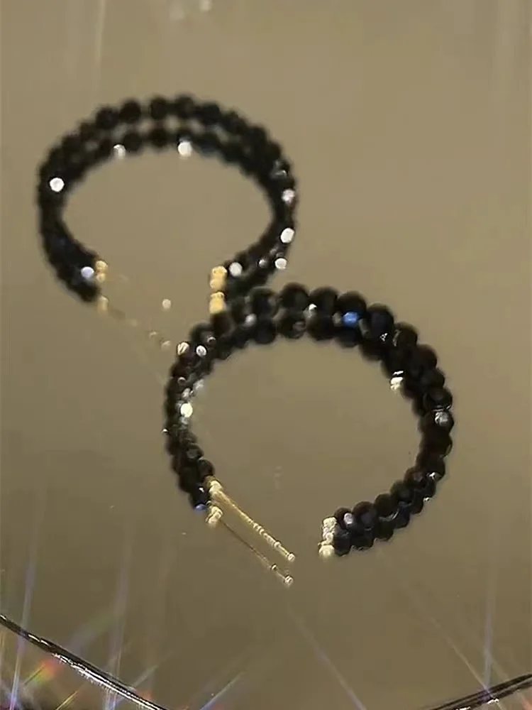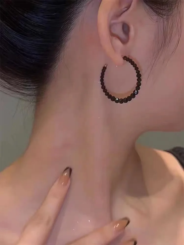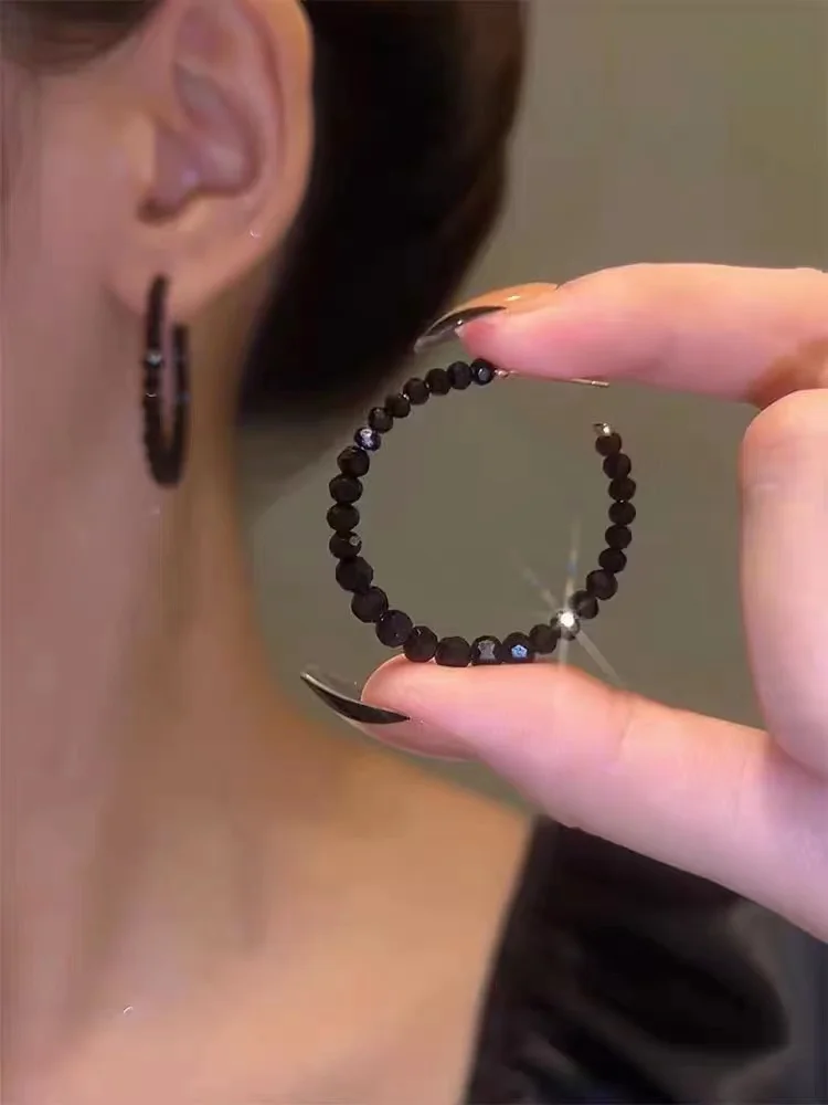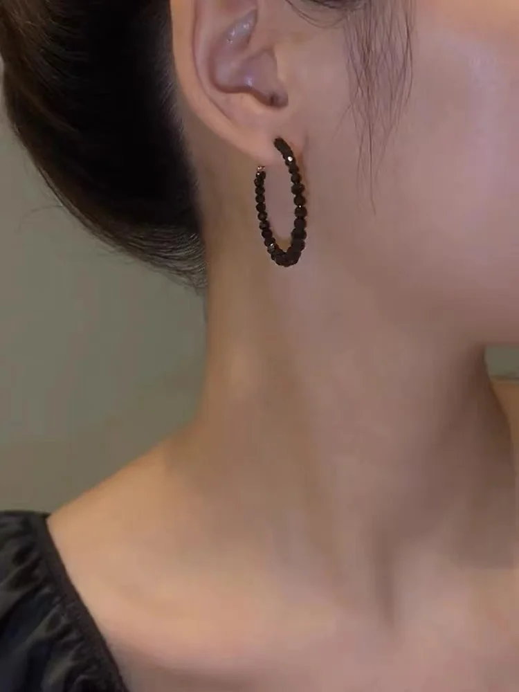 موضة جديدة الاتجاه S925 الفضة إبرة أنيقة ورائعة بسيطة الأسود كريستال أقراط مستديرة مجوهرات نسائية هدية بالجملة