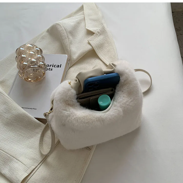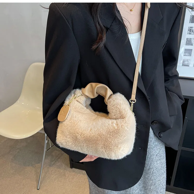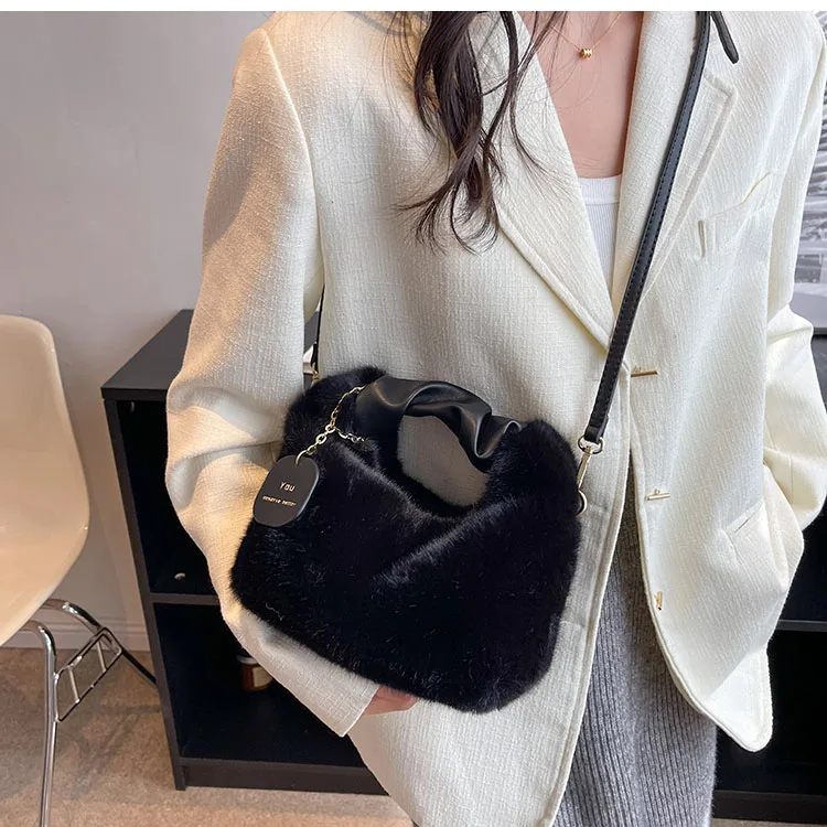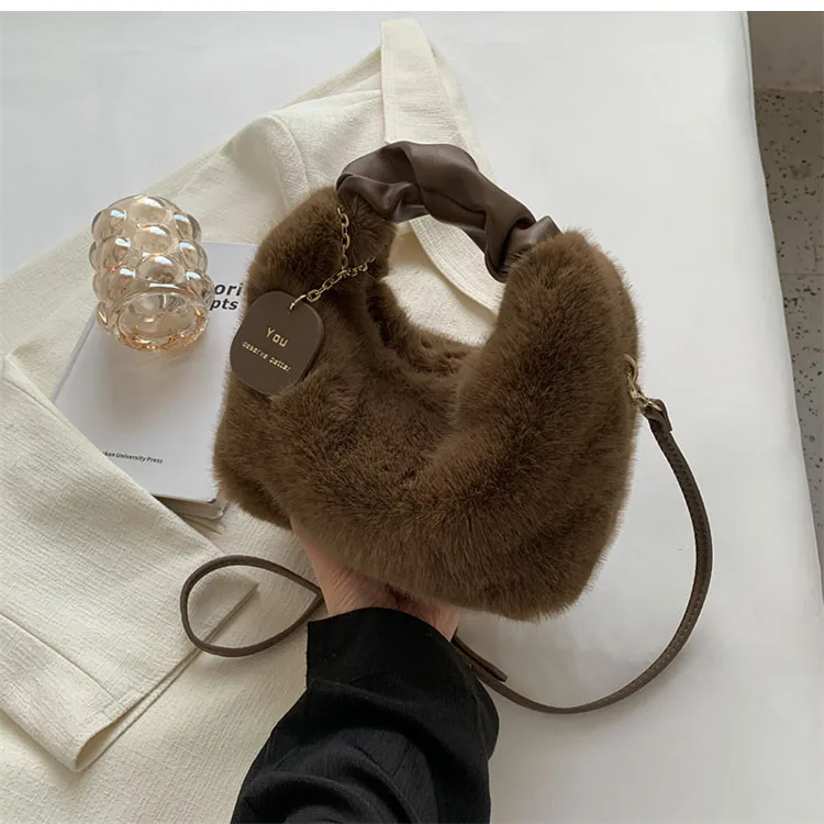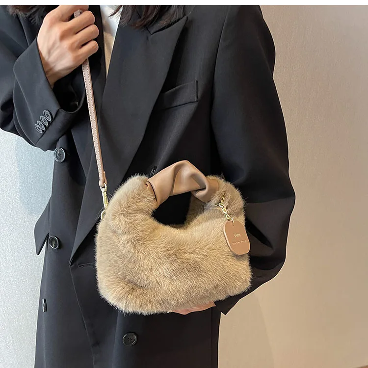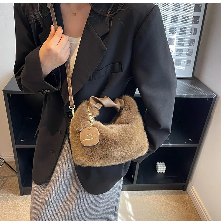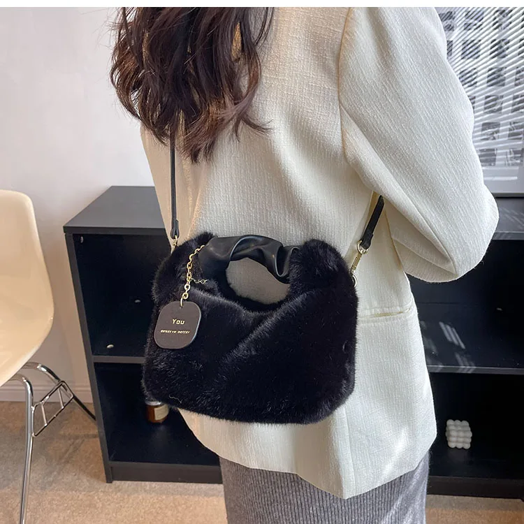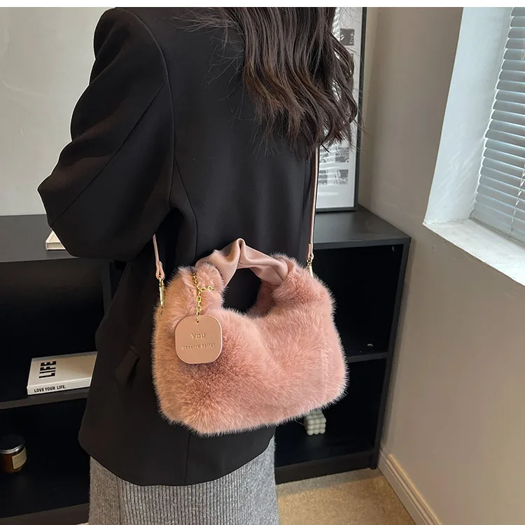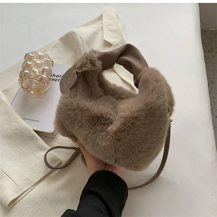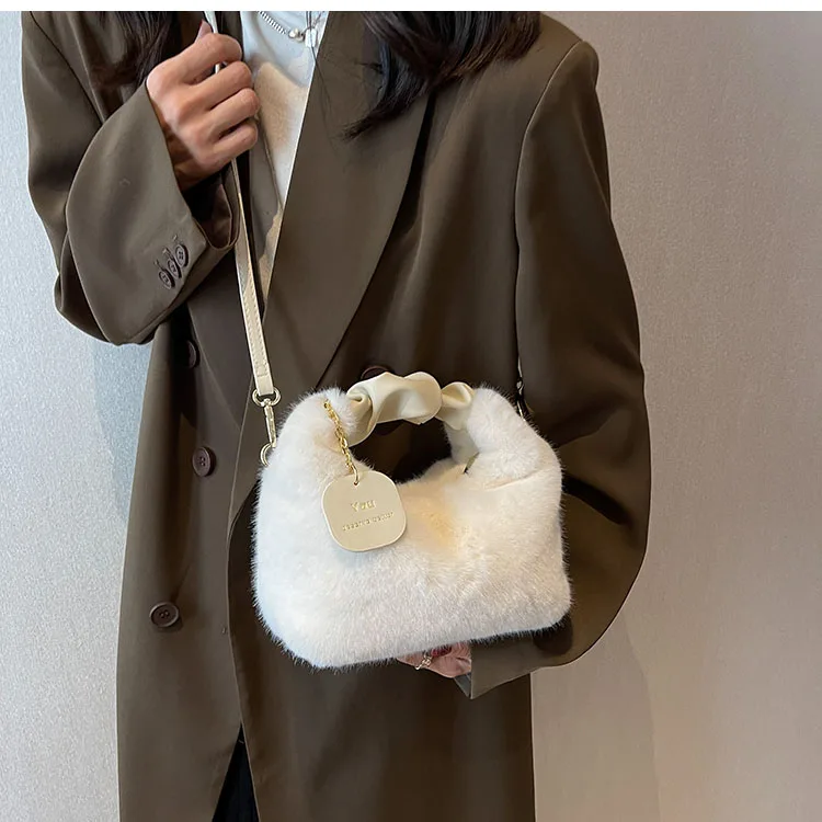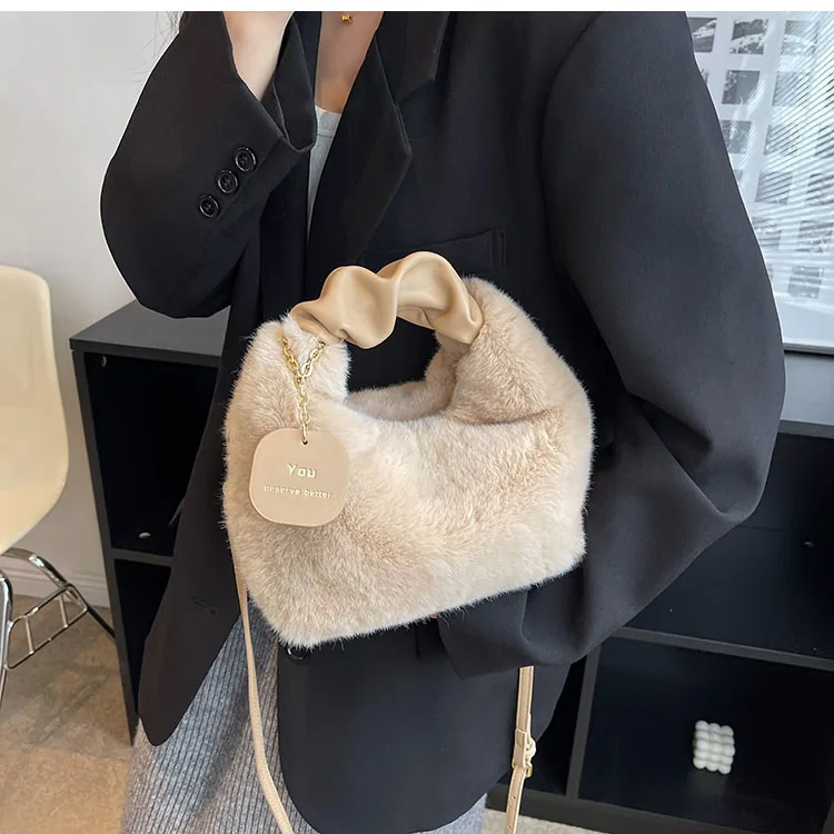 حقائب يد بتصميم فاخر للنساء 2022 شتاء جديد دافئ ناعم من القطيفة حمل حقيبة تسوق حقائب رسول حقيبة كتف للسيدات محافظ