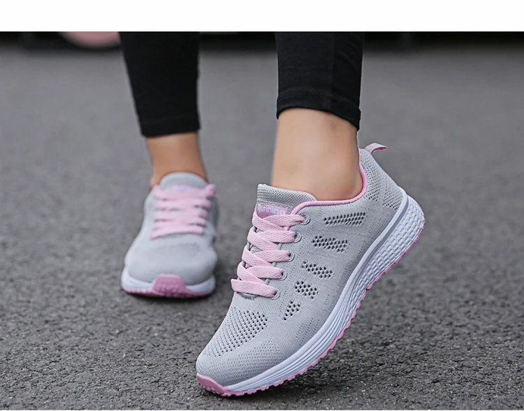 النساء حذاء كاجوال موضة تنفس المشي شبكة حذاء مسطح امرأة بيضاء أحذية رياضية النساء 2022 تنيس Feminino أحذية نسائية