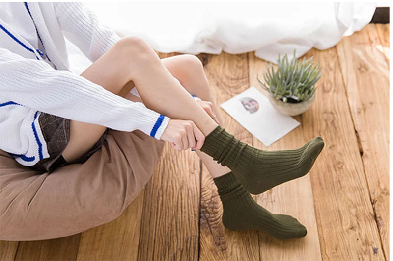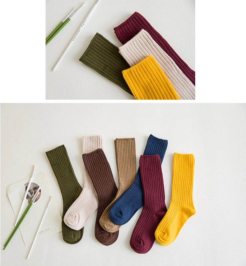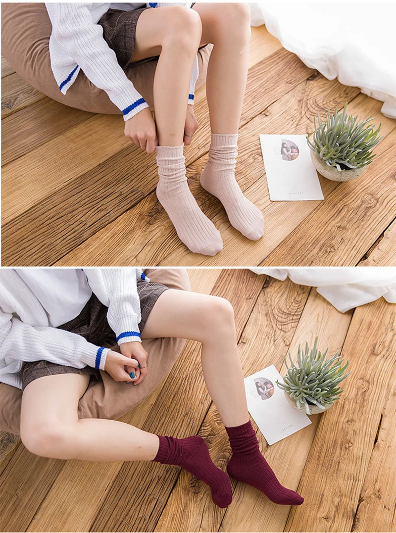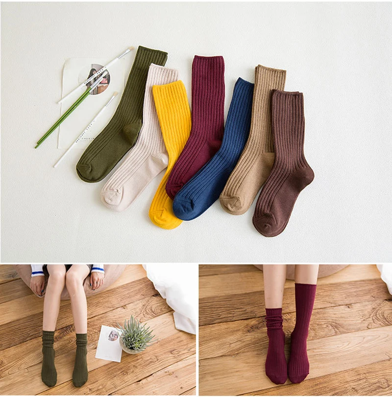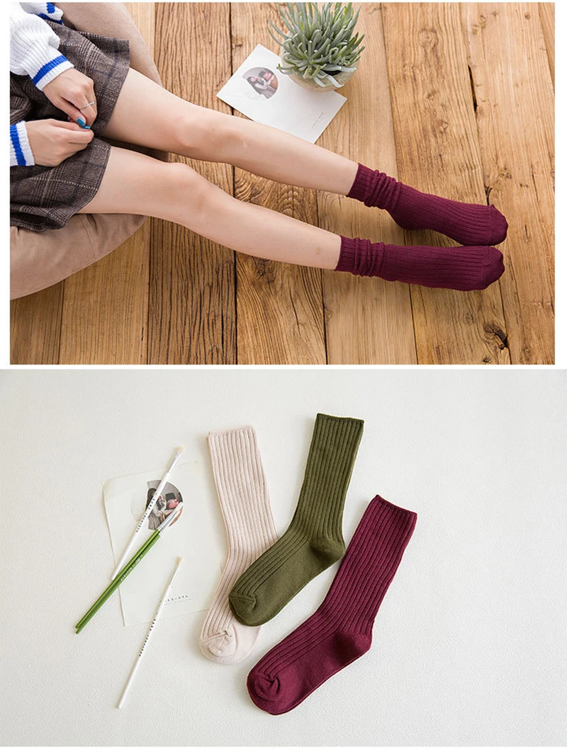 1 زوج ريترو المرأة القطن الجوارب فضفاضة الخريف الشتاء الحياكة بلون طويل أسود وردي الكورية اليابانية طالب الفتيات جوارب