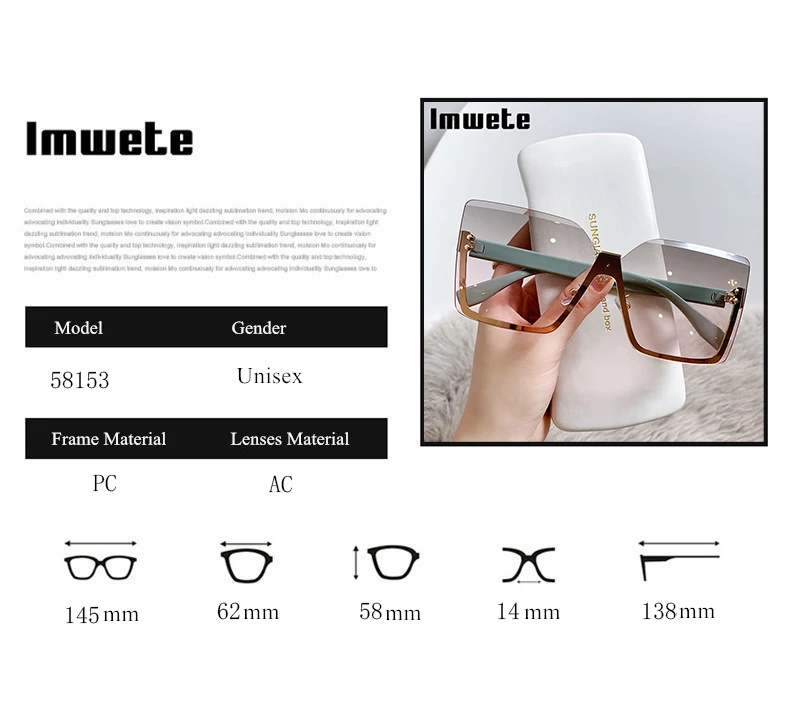 Imwete التدرج بدون إطار مربع النظارات الشمسية النساء الفاخرة العلامة التجارية مصمم 2022 خمر الأخضر الوردي نظارات شمسية السيدات ظلال نظارات