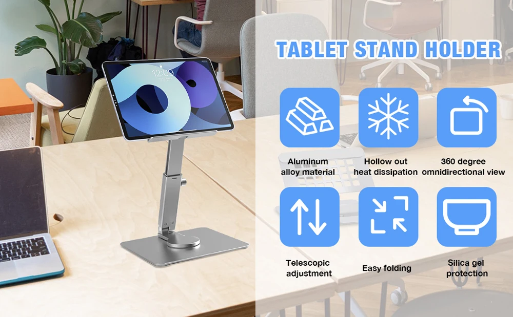 تابلت 360 درجة ، تابلت ، معدّل ، ألومنيوم ، حامل ألومنيوم ، للهواء ، Samsung Xiaomi Huawei ، Jabal