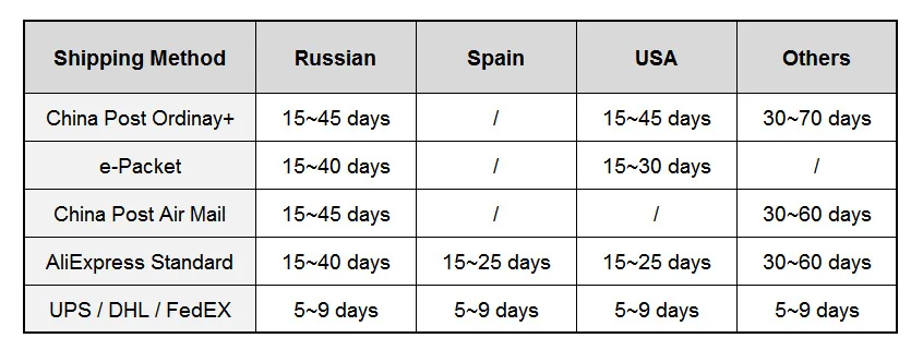 | For 80% countries, When your order is over USD 120 , we ship it via Fast Express such as DHL we offer the most reasonable price and shipping services |