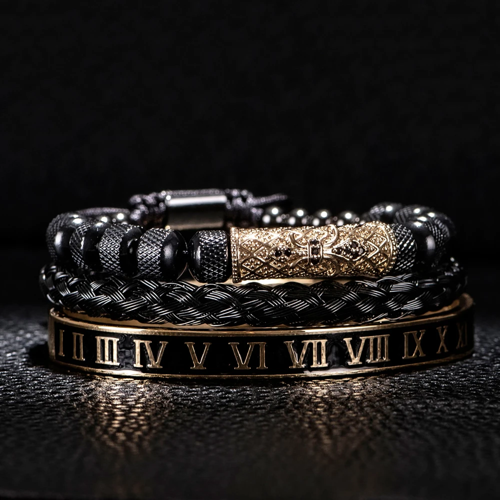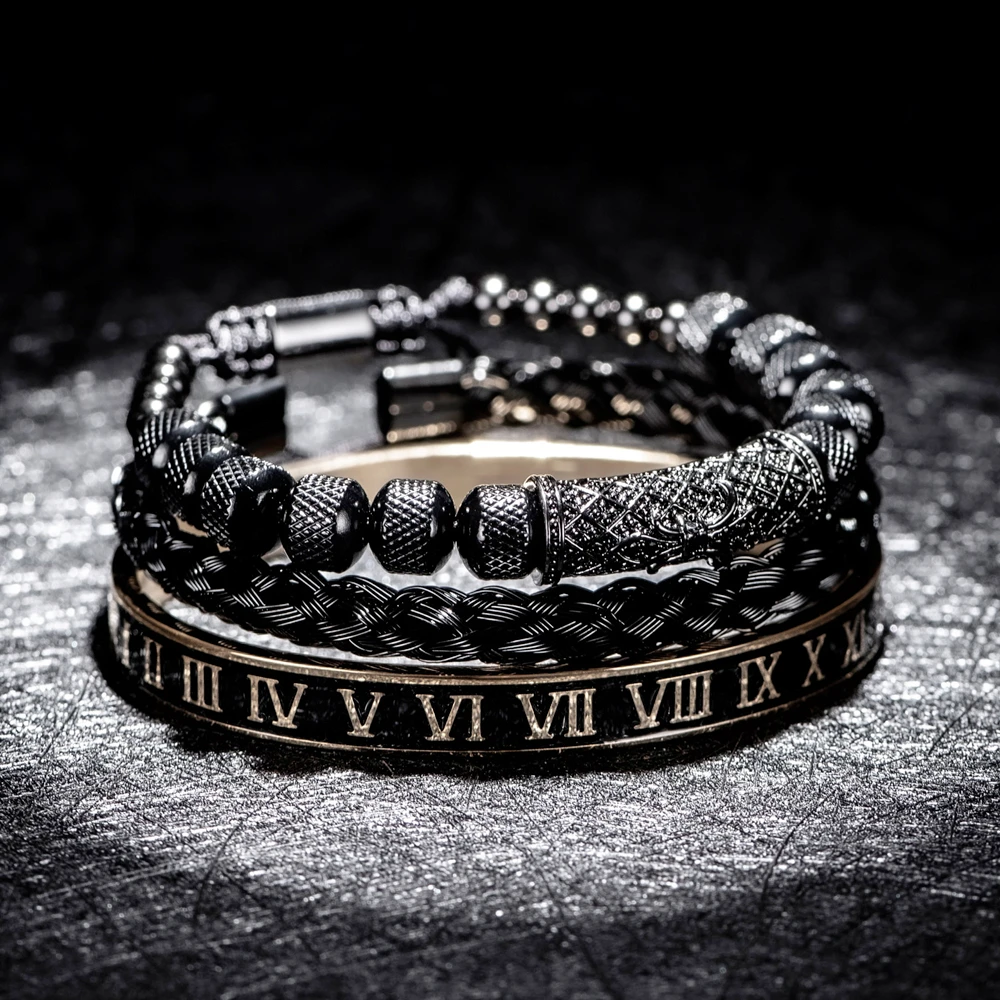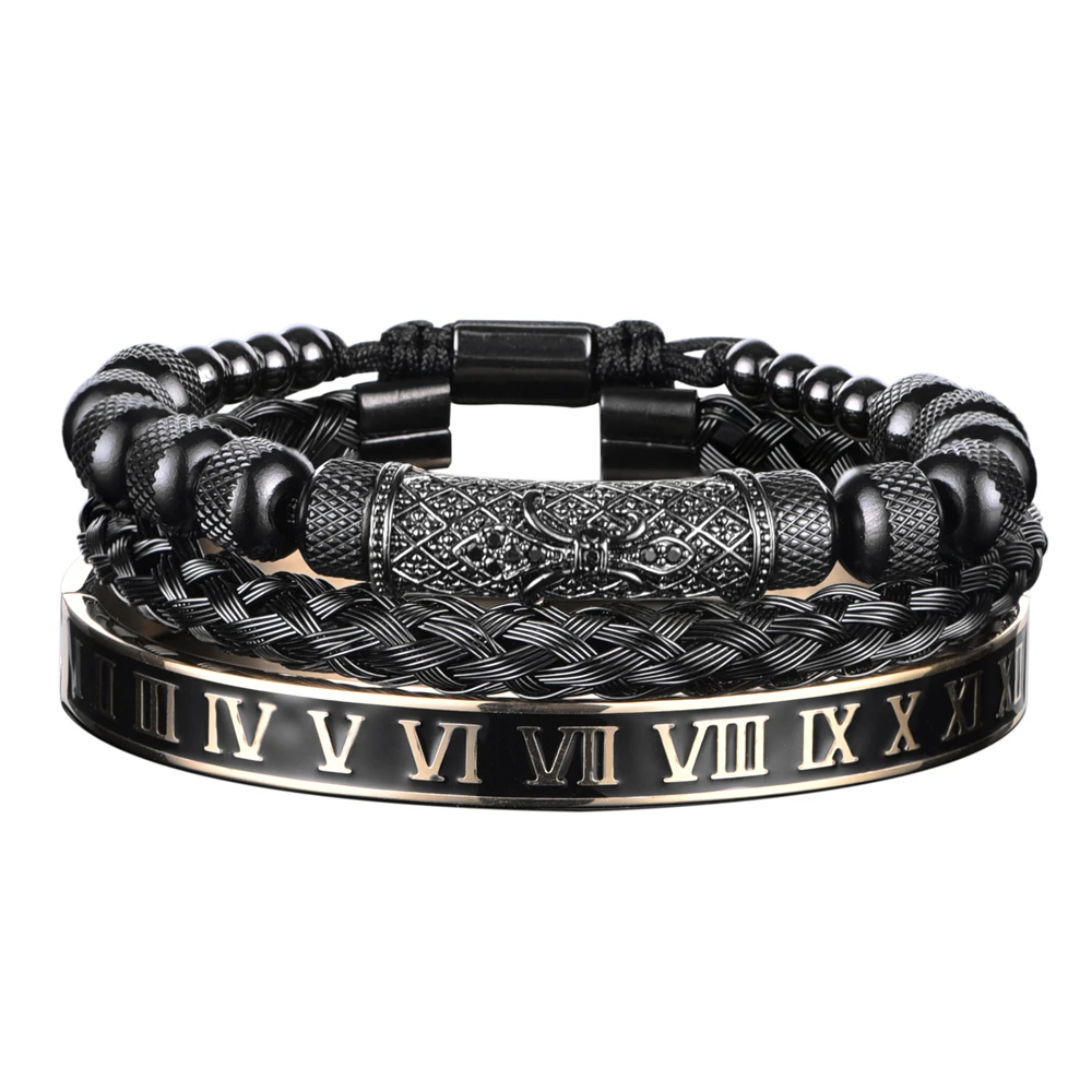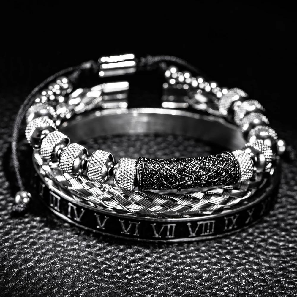 الفاخرة 3 قطع / مجموعة زهرة الصليب سحر الأساور الفولاذ المقاوم للصدأ سوار الرجال المينا رقم روماني أوروبا مجوهرات الموضة