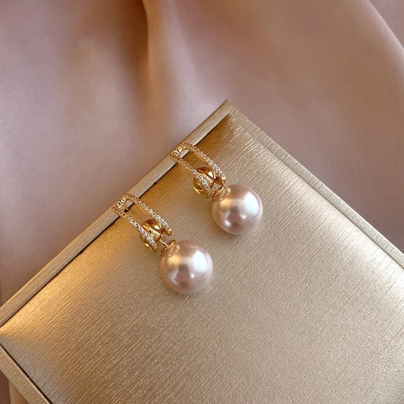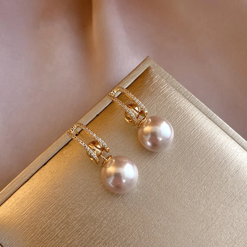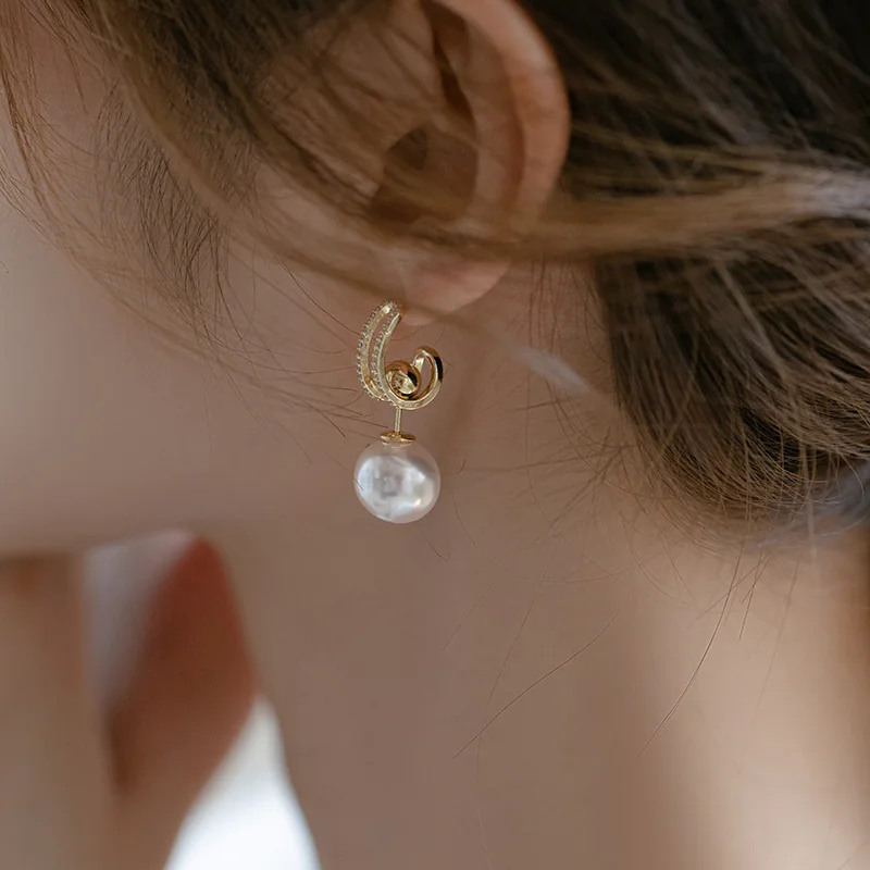 عالية الجودة الزركون وضعت قلادة اللؤلؤ C على شكل أقراط استرخى للنساء اليومية لطيف رومانسية حساسة مجوهرات ساحرة OL N291